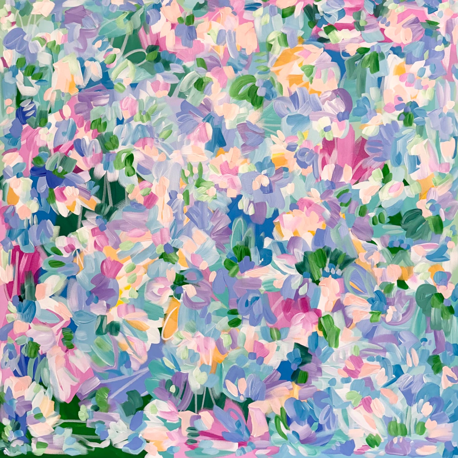 I’m back in the studio and thrilled to be painting for me again, on my own terms. The work feels free flowing, letting both the joys and the lows shape the direction of each piece. Every layer holds a part of the journey, but one thing always remains constant… color. Always color. My art is an abstract point of view, not just seeing nature and florals from afar but experiencing them up close and taking it all in.