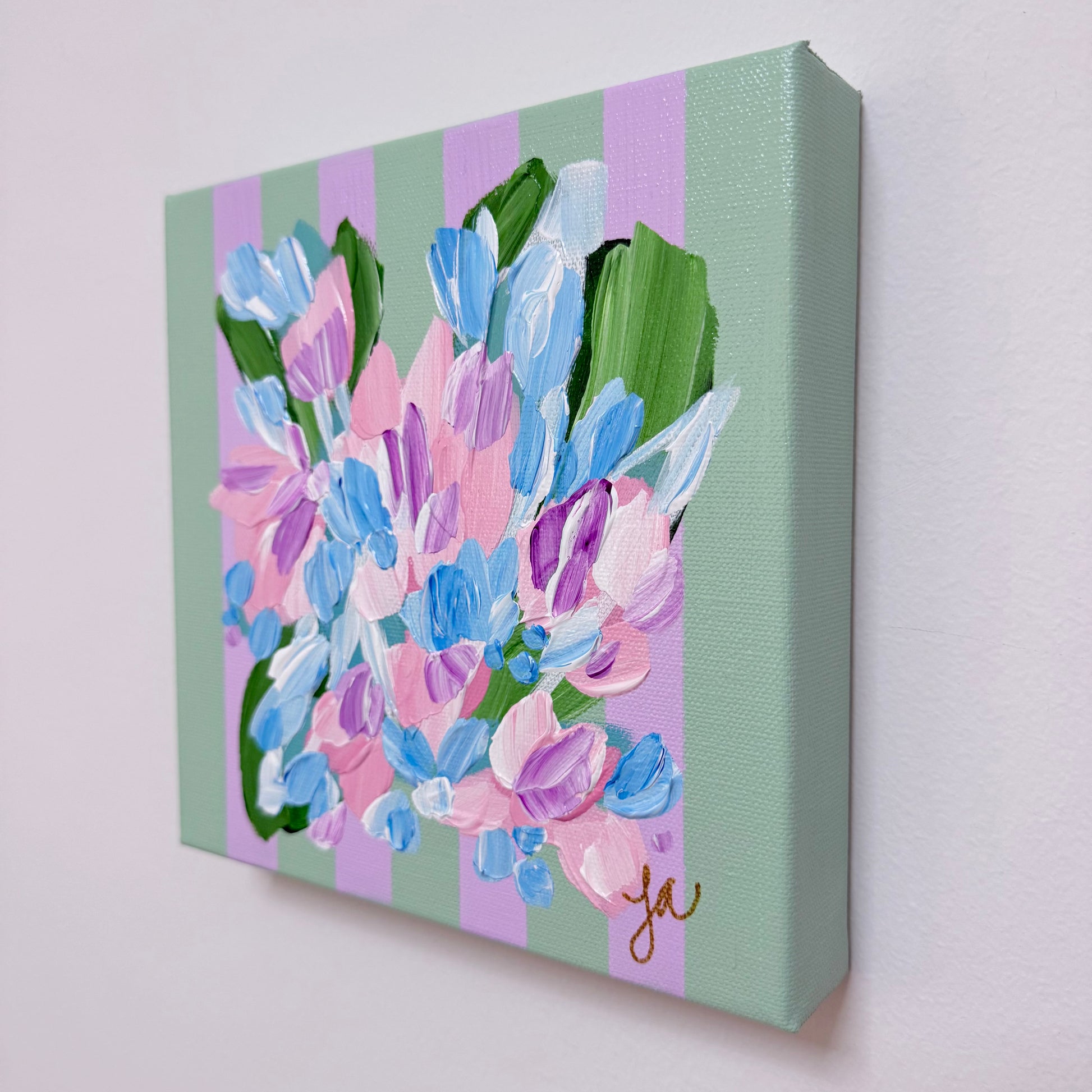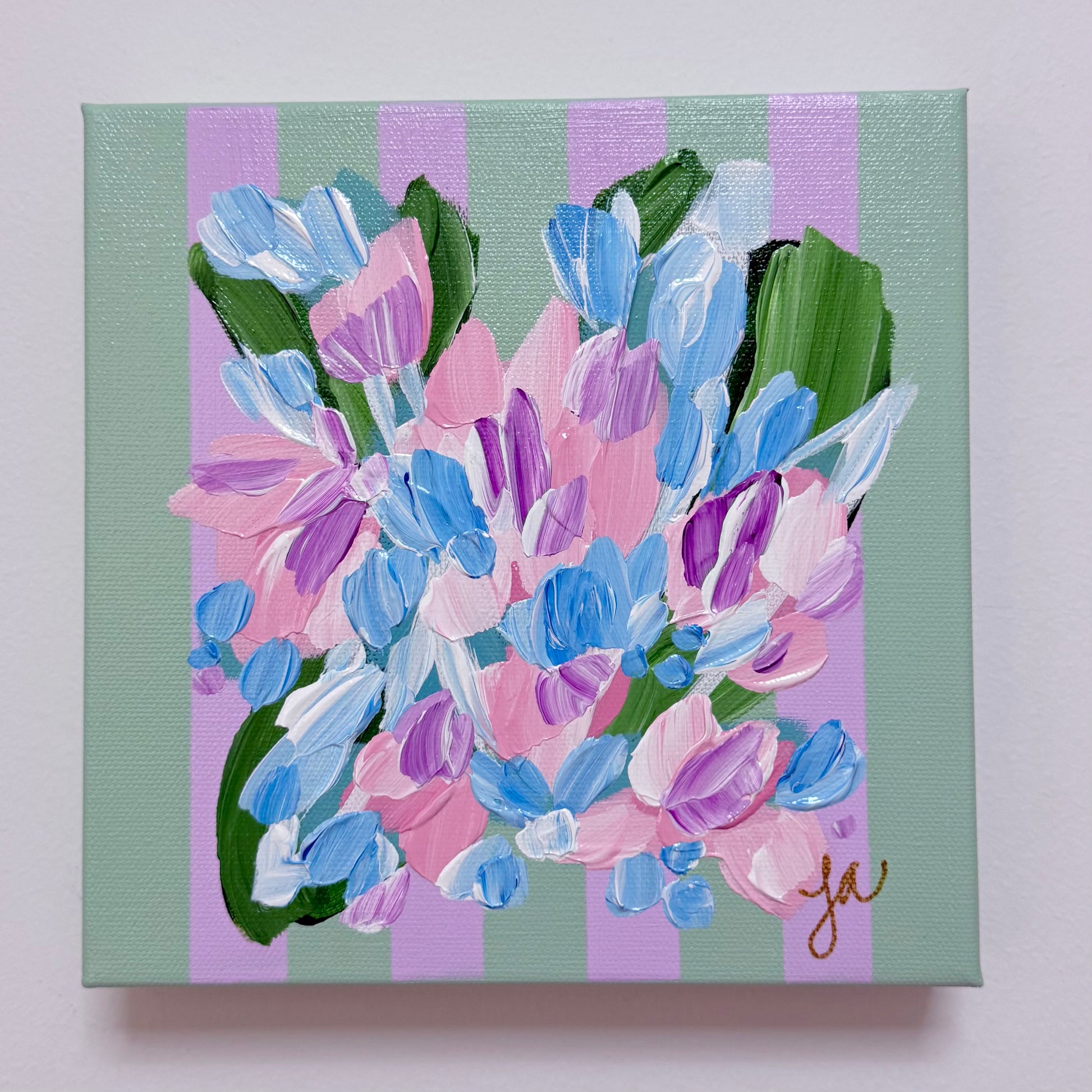 8x8 Gallery wrapped canvas with painted edges, this bold and beautiful abstract bouquet is designed to make a statement. Rich in color and layered with expressive movement, it captures the feeling of fresh flowers in a way that lasts far beyond a traditional arrangement, bringing lasting warmth, joy, and a meaningful touch of beauty to any space.